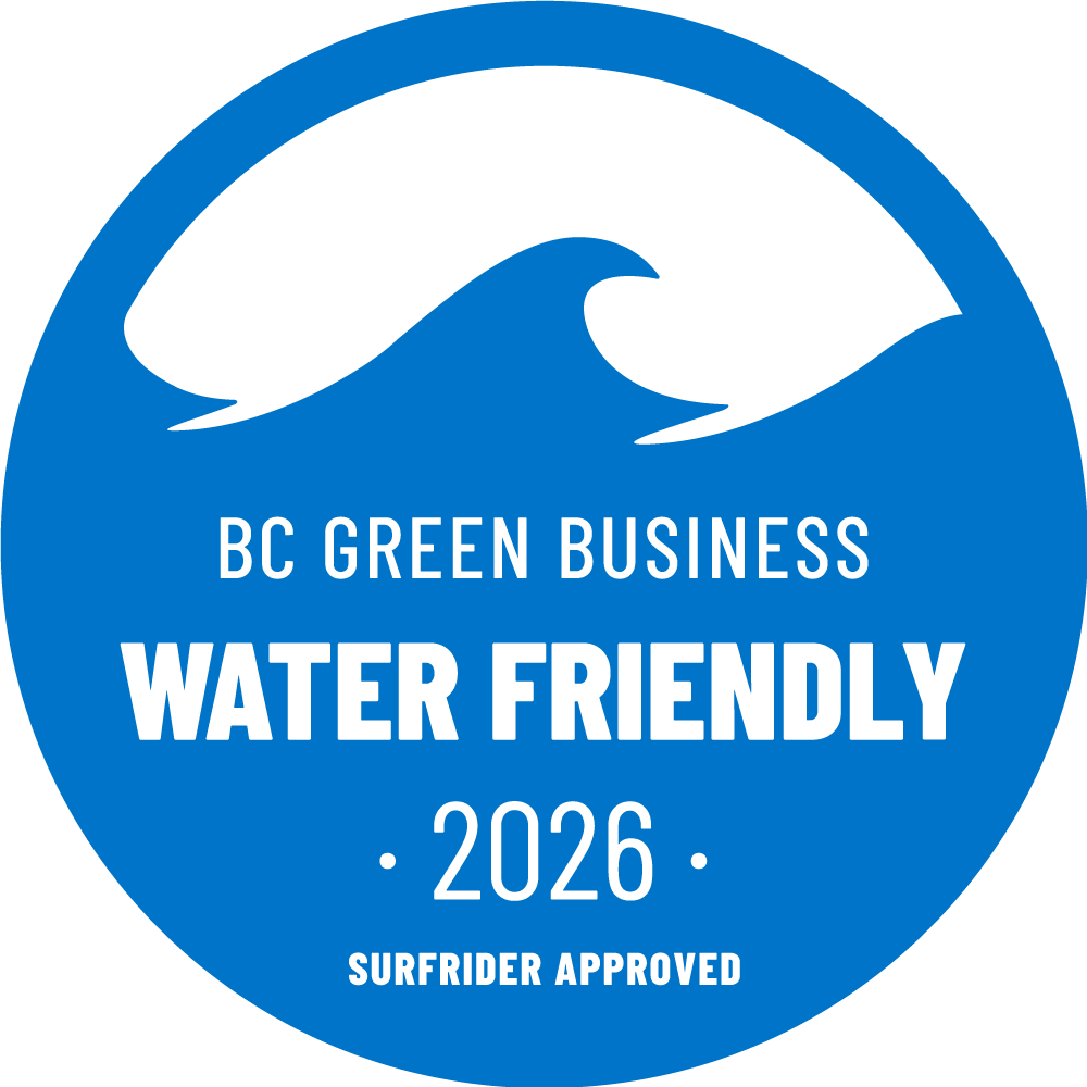 At Blue Crush Concierge, sustainability is woven into everything we do. As a BC Green Business certified Green & Water Friendly Business, we are committed to responsible hospitality through practical, measurable action — from reducing waste and conserving water to supporting responsible tourism and community stewardship. Our goal is to deliver exceptional guest experiences while protecting the natural environment and coastal communities we call home.